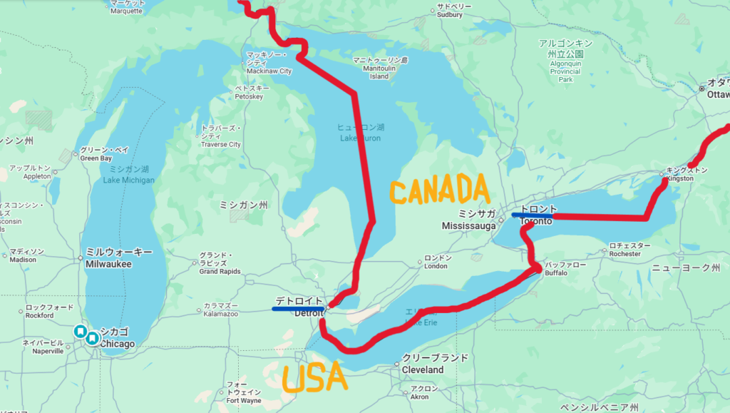 ちなみに五大湖と呼ばれているスペリオル湖、ミシガン湖、オンタリオ湖を合わせると日本の本州と同じくらいの面積となります。